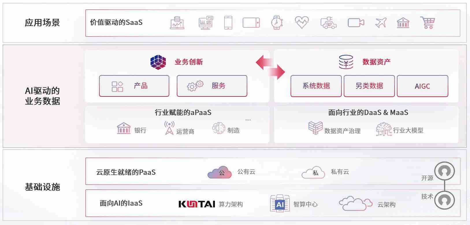 数字时代,,,,围绕企业数字化转型的关键要素,,,申博官网数码开创性的提出数云融合战略和技术体系框架,,着力在云原生、、、数字原生、、、AI原生和信创产业上架构产品和服务能力,,,,为处在不同数字化转型阶段的快消零售、、、、汽车、、金融、、、医疗、、、政企、、、教育、、、运营商等行业客户提供泛在的敏捷IT能力和融合的数据驱动能力,,构建跨界融合创新的数字业务场景和新业务模式,,,助力企业级客户建立面向未来的核心能力和竞争优势,,,全面推动社会的数字化、、智能化转型升级。。。。